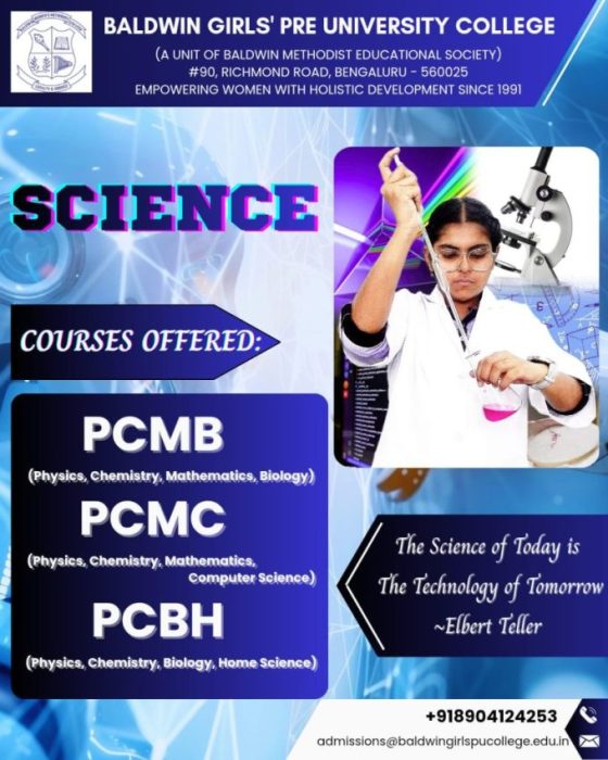The PUC Science section offers diverse combinations like Physics, Chemistry, Mathematics, Biology, Computer Science and Home Science, allowing students to tailor their studies to career aspirations in Engineering, Medicine, or Research.